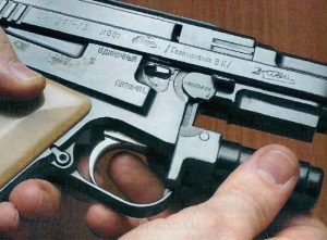 Этот пистолет мог выпускать 48 пуль в автоматическом высокоскоростном режиме и имел самовзводный курок. Его создал изобретатель-самоучка Виктор Герасименко, к своему пистолету он придумал и безгильзовый патрон уникальной конструкции. Порох находился внутри пули, в задней части которой вкручивался фланец с капсулем. Пистолету не требовалось выбрасывать гильзу, таким образом была достигнута высокая скорость стрельбы, а специальный […]