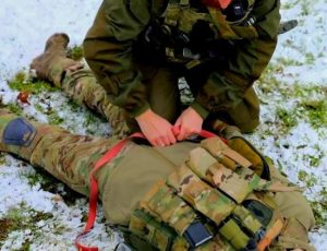 Кровопотеря — главная причина потерь на войне. Как оказать помощь во время боя и самому остаться живым? Рассказывает и показывает действующий инструктор российских спецподразделений. Помогает ему в этом Семён Пегов. Ранение в ногу: автомат в руках, поэтому «пальцевое прижатие» делается при помощи колена или кулака. Нога раненого закидывается наверх и накладывается жгут (правильно — «тактический […]