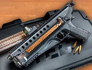 Это знаменитый российский пистолет, которым вооружена охрана Президента РФ. У него несколько разных имен: РГ055, СР 1, пистолет «Вектор», «Гюрза» и другие. На вооружении он состоит как СПС — самозарядный пистолет Сердюкова. Его очень полюбили в ГРУ и спецназе — там это пистолет №1. Однако ФСО (федеральной службе охраны), Вашингтон официально запретили брать этот пистолет на территорию США, если он используется для охраны президента РФ. Почему? Чего так боятся американцы?Конструктор чьим именем назван этот пистолет Петр Иванович Сердюков, совершил революционный рывок в проектировании оружия — об этом знают лишь специалисты. Пистолет хорошо лежит в руке, удобен и безопасен в обращении, очень надежен. Главная уникальность пистолета состоит в его патроне — 9×21 мм образца 1995 с большой дульной энергией 635 Дж. В номенклатуре боеприпасов аж целых 9 патронов, три из которых бронебойные.