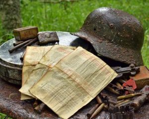 В этих местах проходили жесточайшие бои. Об этом красноречиво говорят не сработавшие гранаты Ф1 подняты из реки, немецкие каски в разной степени сохранности. Тяжелый немецкий 150-мм не сработавший снаряд, со следами от нарезов в передней части, а так же другие снаряды и гильзы самых различных калибров. Пуговица военнослужащего из Воронежской губернии. Немецкий противогазный бак с […]