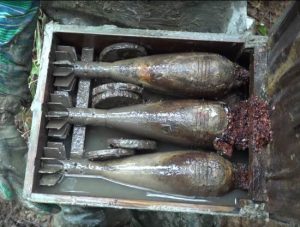 Почти два десятка ящиков в отличном состоянии. Поисковый отряд «Юрий Гагарин» нашел уцелевший блиндаж немецких минометчиков. Помимо бесконечных мин в идеальном состоянии, там была найдена минометная плита, топор с самодельной ручкой, патроны, останки телефона и другая солдатская мелочевка.Так же не пропустите подборку «Раскопки немецких блиндажей» (Россия, 2011-2015).