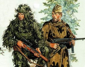 Этот камуфляж называется platanenmuster (листья платана), он напрямую ассоциируется с войсками СС и изготовлялся до 1942 года. Далее был создан двухсторонний вариант этого камуфляжа, на одной стороне дубовые листья, на другой листья платана, выпускался до 1943. Сама идея переодевания войск СС в камуфлированную форму связана с командиром разведывательного подразделения СС. Майор Брандт обратился с просьбой […]