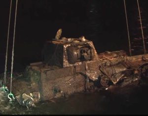 При подъеме танк повернулся на бок, все 47 тонн держали только две стропы из 4-х. Команда решила поднять танк чуть над водой и в таком положении переместить его ближе к берегу — там КВ поставили в нормальное положение, и уже так дотянули до места транспортировки в 4 километрах от места подъема. У КВ-1 отсутствовал ствол […]