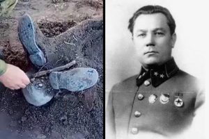 Его указала 95-летняя жительница деревни Антонина Николаевна. Её отец был очевидцем расстрела генерала у стены её дома 29 сентября 1941 года. Его тело зарыли на заднем дворе хозяйства у конца огорода, где когда-то стояли сарай и баня. 25 лет назад Антонина копала яму под бочку в этом месте и наткнулась на кость ноги.Поисковики узнали про […]