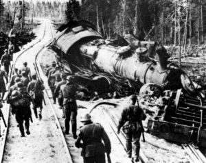 Советские партизаны взрывали десятки тысяч рельсов в день, а немцы их неустанно восстанавливали и охраняли. Постановка взрывчатки на рельсы была отработана до автоматизма. Немцы боролись с этим как могли. На производство рельсов были пущены заводы Польши и Германии. Немцы даже придумали эрзац-паровоз, который можно было собрать в любом депо. Вдоль путей они вырубали весь лес […]