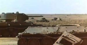 Цветная хроника со звуком и увеличенной частотой кадров до 60 FPS. Снята по всей видимости спустя несколько дней после интенсивных боев, так как техника выглядит только что брошенной. На первых кадрах уничтоженный советский эшелон с техникой и продовольствием: немцы разгружают мешки с мукой из поврежденных вагонов, паровоз сгорел, советские поврежденные танки Т-34 и КВ-1, а […]