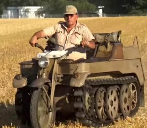 Этот Кеттенкрад в сохранился с войны родном оригинальном цвете. Его хозяин объясняет зачем впереди находится колесо. Нужно оно не только, чтобы поворачивать, но прежде всего позволяет преодолевать высокие препятствия, вроде толстого бревна и владелец весьма экстремально демонстрирует это, чуть не падая перед вездеходом (на 4:55). Двигатель Опель 1,5 литра (36 л.с.), карбюратор Солекс. Скорость до […]