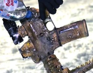 Перед испытанием каждый образец был отстрелян и со вставленным магазином залит водой, кинут в снег, оставлен замерзать при минусовой температуре до появления льда. Испытуемые: АК-200, HK416 (два вида), SIG 551, Bushmaster, VAR, спортивная винтовка на базе M4A1. Один HK416 был обильно смазан ружейным маслом. Далее все образцы были испытаны на стрельбу в обледенелом состоянии, ну […]