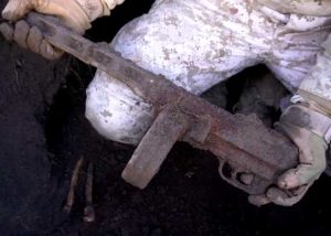 Иногда чтобы найти павших бойцов Великой Отечественной войны не обязательно углубляться далеко в леса. На полях так же немало прикопанных в своих ячейках-могилах солдат — как советских, так и немецких. Так поисковики находят советского бойца, при котором кроме личных вещей так же несколько гранат Ф-1 и РГ-42. Он погиб во время боев за снятие блокады […]