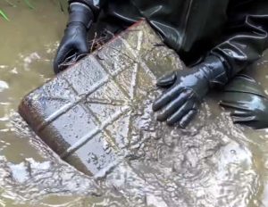 С большой глубины тяжелые предметы невозможно достать магнитом или руками, а только зажав ногами. Чтобы достать до самого низа болота, один поисковик садится на плечи другому и топит его в полный рост с головой. Так со дна удается достать два тяжелых немецких снаряда, ящики пустые и со странным содержимым. Необычной находкой становится пакет с кучей […]