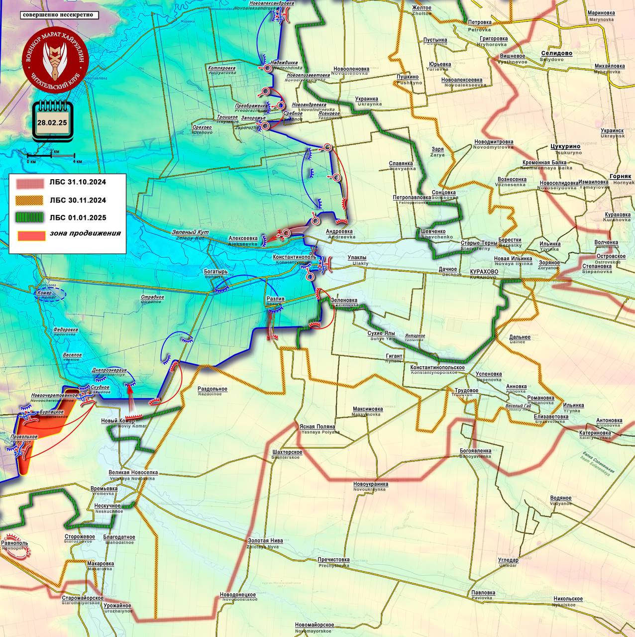 Также армия России развивает наступление в направлении н.п. Богатырь с юга. Этот населённый пункт является основным логистическим хабом на данном участке.