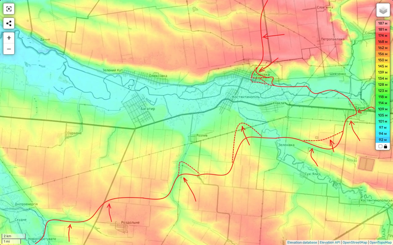 Новопавловское направление на 02.02.25: Андреевка, Дачное, Константинополь… Очень интенсивные бои идут на этом участке фронта. Причем, уже очевидно, что после освобождения Большой Новосёлки наше командование группировки «Восток» именно сюда перевело освободившиеся резервы и широким фронтом начинает давить противника по обе стороны нижнего течения реки Волчья. Южнее реки мы атакуем в сторону н.п. Разлив, Богатырь, Константинополь и имеем тактические успехи на всех участках. Севернее основные бои идут в Андреевке, где наши части уже заняли до трети этого села. А еще мы дожимаем части ВСУ в районе Дачного. Таким образом ситуация здесь для противника продолжает ухудшаться.