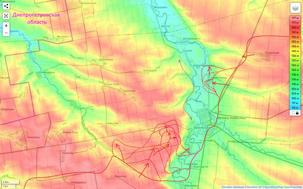 Для обеспечения левого фланга этого удара, наши части вчера, расширяли своё контроль севернее Ровнополя и сумели занять очередной холм и дойти до последней балки перед трассой на Гуляйполе.