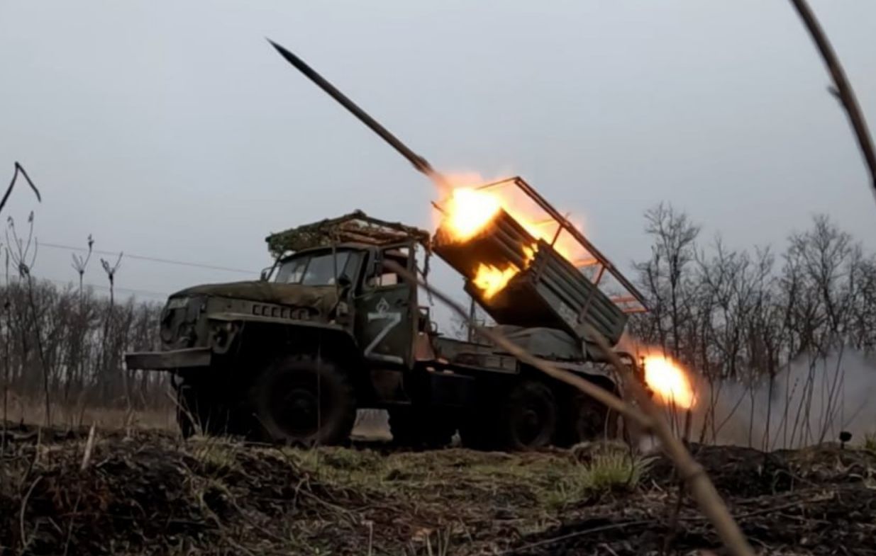 Накрытие из РСЗО БМ-21 «Град» позиций ВСУ юго-западнее Белогоровки. Устраиваем настоящий ад для прячущихся в «норах» боевиков.