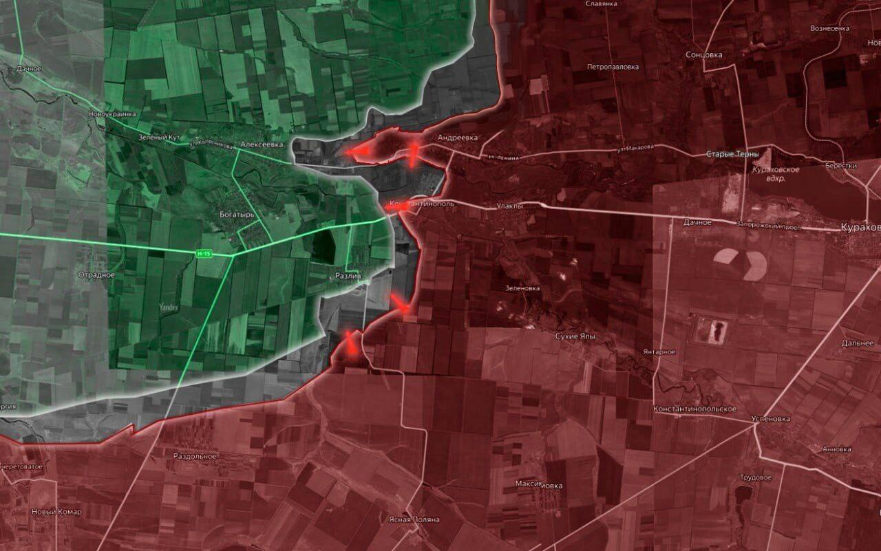 На Кураховском направлении российские войска освободили Андреевку, что создает угрозу формирования «огневого мешка» для украинских сил, удерживающих позиции в Константинополе, где продолжаются интенсивные бои. Так, продвижение ВС РФ в Андреевке позволяет расширить охват Константинополя, затрудняя снабжение украинских подразделений и ограничивая их возможности для маневра. С учетом этого ВСУ могут столкнуться с необходимостью экстренной перегруппировки или отвода сил на новые рубежи.