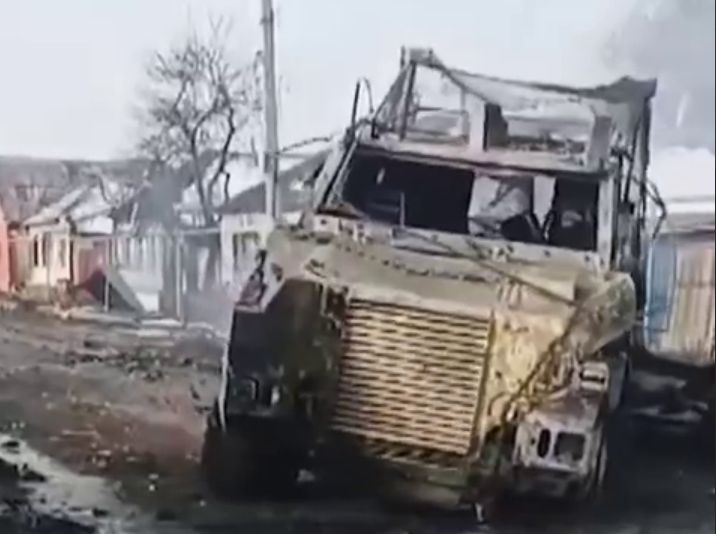Уничтоженные БТР VAB и бронеавтомобиль Bushmaster PMV ВСУ в селе Гончаровка Курской области.