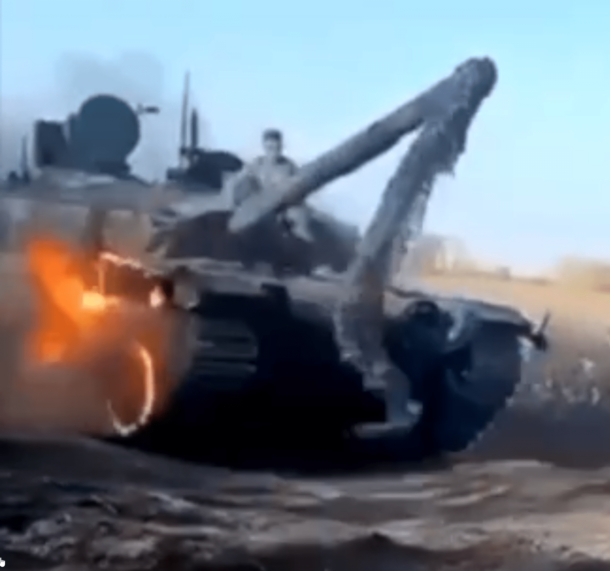 Т-90 бодро топит в тыл на ремонт после попадания FPV-дрона.