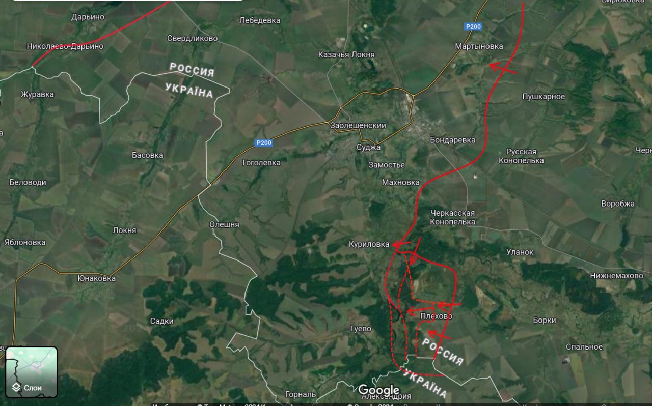 Южнее Суджи, пытаемся переправиться через Псёл и занять холмы на его западном берегу. Пока очень тяжело здесь, несмотря что в этих попытках мы зашли на территорию Сумской области и продвигаемся по направлению к Александрии.