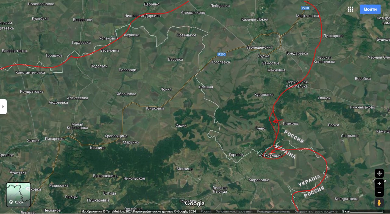 Вчера, как мы помним, и противник тоже это признал, наши части южнее Суджи зашли на территорию Сумской области в районе н.п. Александрия.
