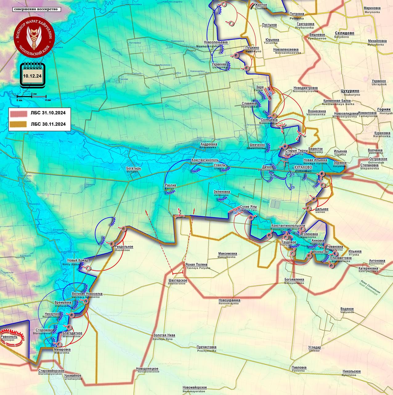 Постепенно закрывается так называемый «малый кураховский карман» севернее водохранилища, где подразделения армии России вышли к железной дороге между Вознесенкой и Берестками на всём её протяжении.