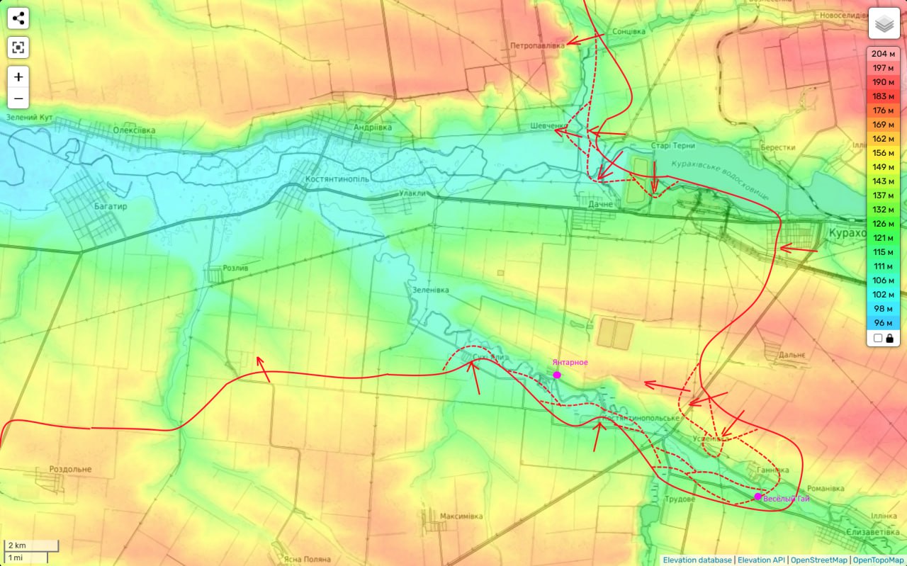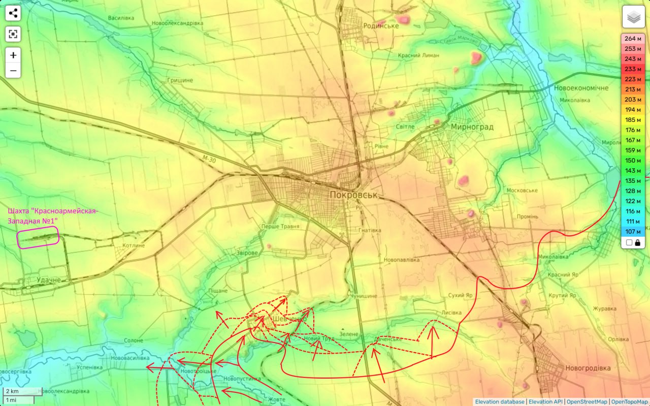 Что и дало нам возможность без боя занять очень сильные позиции и … фактически за несколько дней взять под контроль ключевое село южнее Покровска (Шевченко).