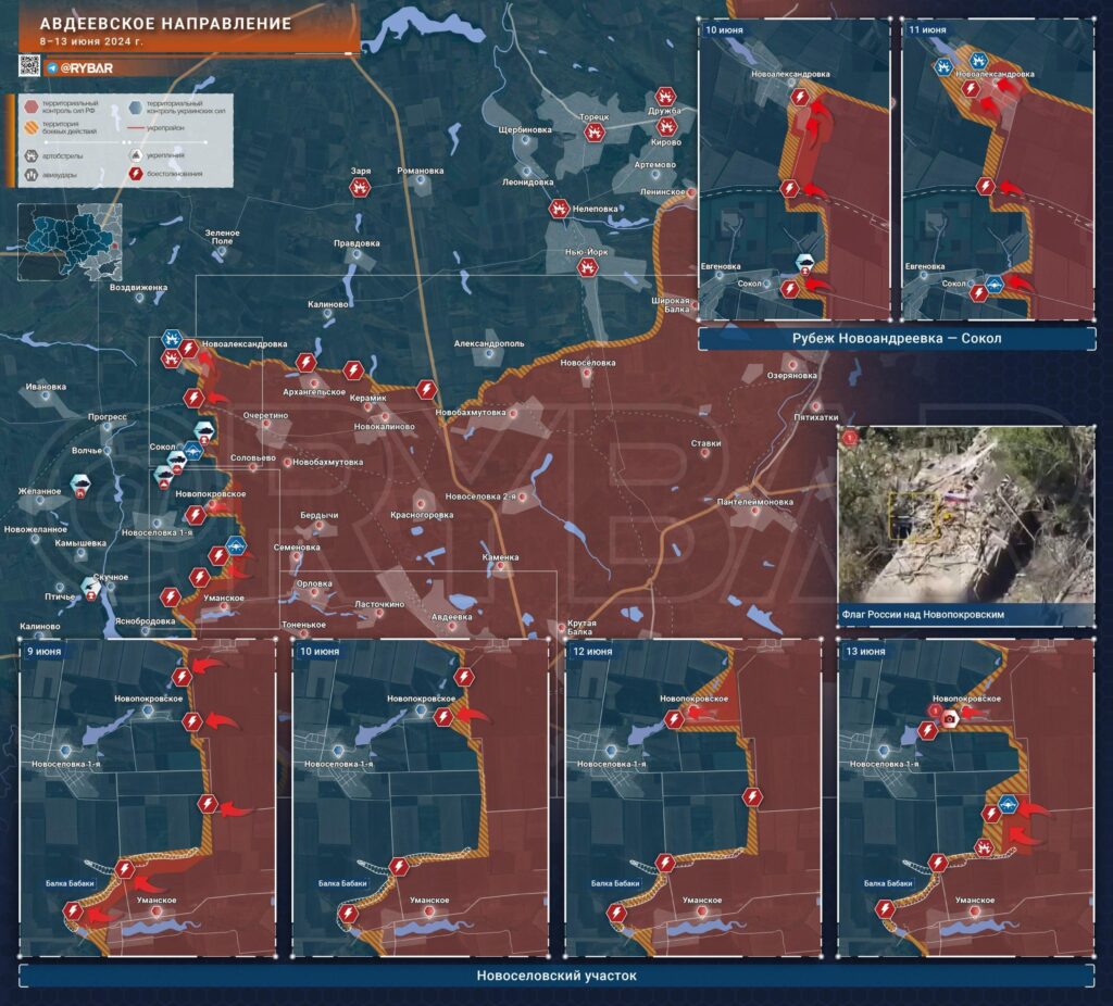 На окраинах Новопокровского бои завязались к 10 июня, а уже 12 под контроль российских войск перешли практически все сохранившиеся строения и часть прилежащих лесополос. Сегодня появились и кадры с водружением флага на западной окраине.