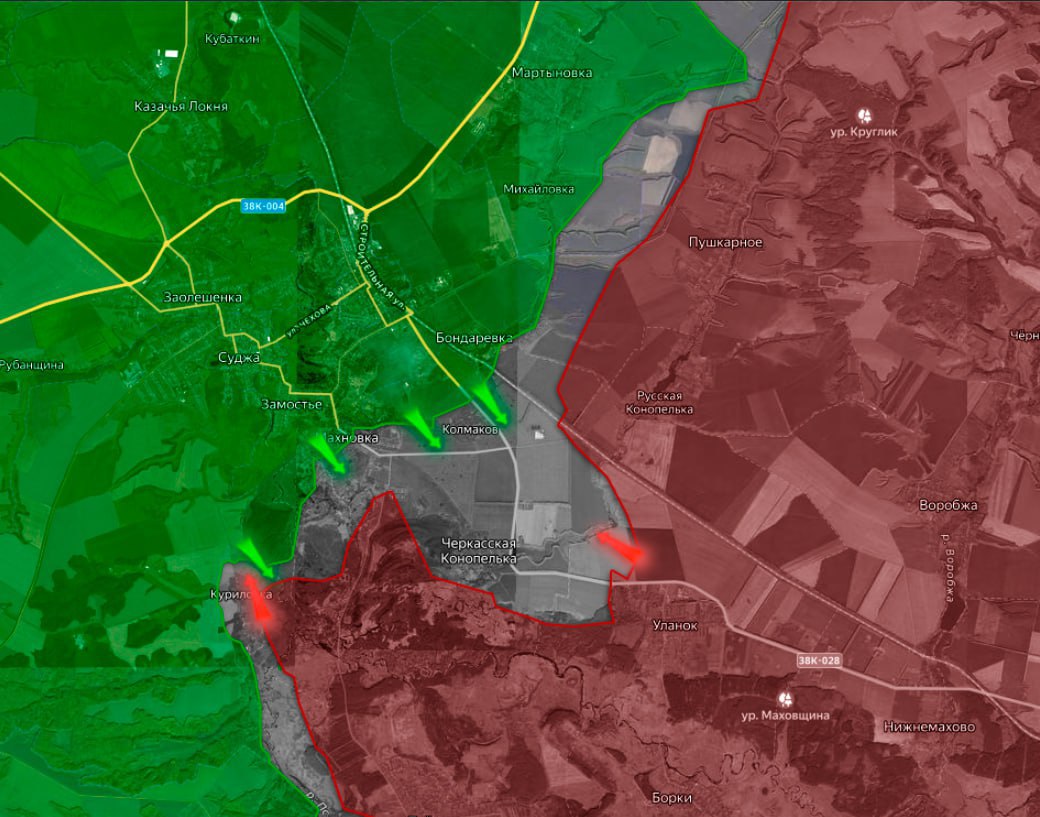 ВС РФ укрепили позиции в Свердликово и продвинулись на запад, вытеснив украинские подразделения из укреплений в лесополосах. Продолжается продвижение в сторону Суджи, где российские силы стремятся расширить контроль над ключевыми участками. В районе Погребков идут интенсивные бои – российские войска закрепляются на новых позициях и оказывают давление на западные окраины Куриловки. ВСУ перебрасывают резервы, пытаясь стабилизировать ситуацию и контратаковать на данном участке фронта.