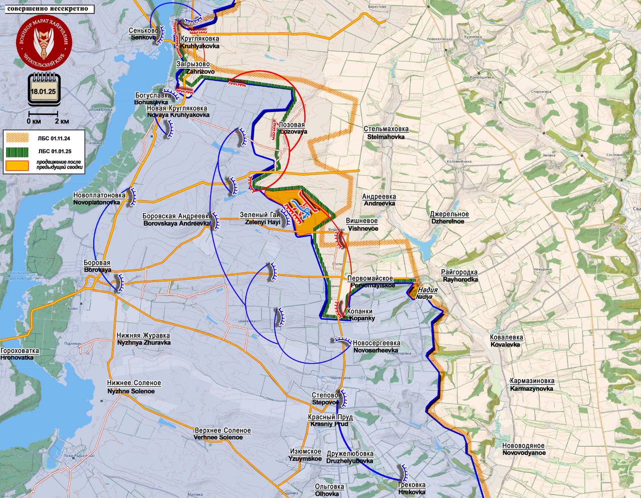 В ходе штурмовых действий со стороны н.п. Лозовая ВС РФ вышли к н.п. Зелёный Гай.