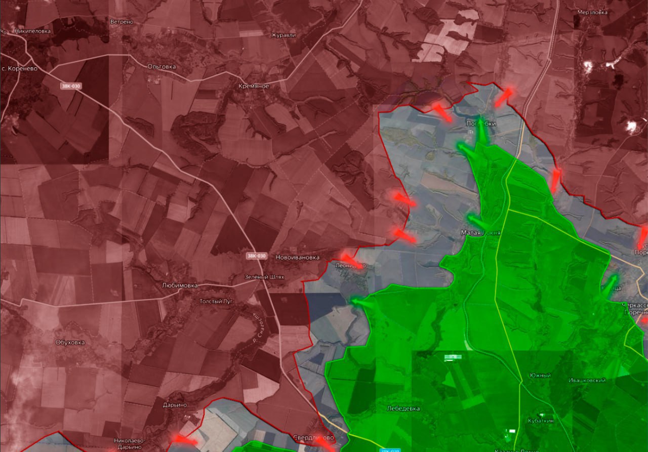 На Курском направлении идут бои в районе Погребков. Российские силы закрепились на берегу реки Локня, расширяя контроль над подступами к Лебедевке для того, чтобы перекрыть основные маршруты снабжения украинских подразделений в Малой Локне и Погребках. В районе Свердликово ВС РФ продолжили наступление, отразив контратаку ВСУ, которые задействовали пять штурмовых групп на четырех БМП при поддержке танка.