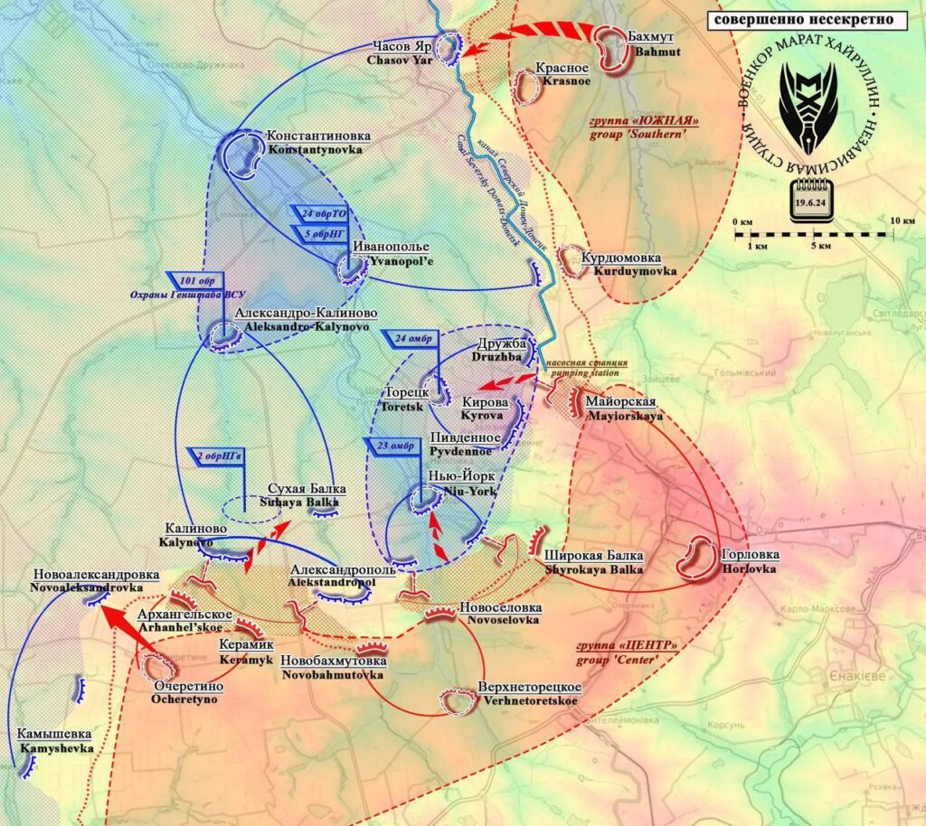 Отрежем Торецк от снабжения, а потом решим, что с ним делать. Короткая сводка с фронта 20 июня 2024 года. На Торецком участке Донецкого направления в районе Архангельского ВС РФ продолжают расширять зону контроля, продвигаясь на север западнее каскада ставков.