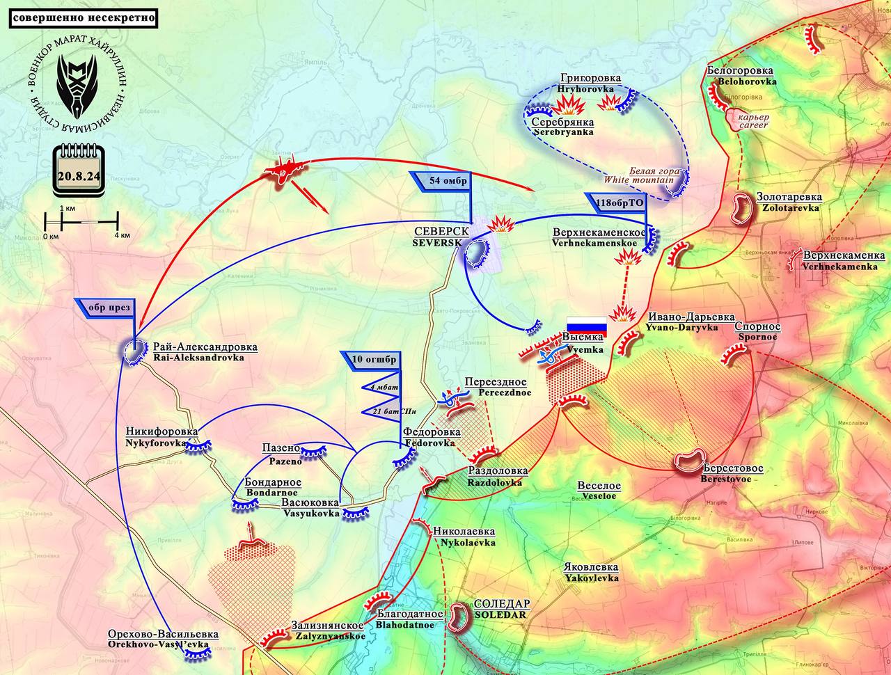Относительно потенциальных планов противника. Помимо активных действий в Курской области и потенциальных вспомогательных ударов на границе Белгородской и Брянской областей, противник предпринимает определенные меры по концентрации сил для потенциального удара на Запорожской АЭС. Удар может представлять из себя комбинированную операцию.