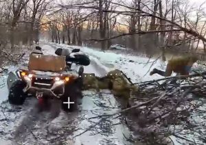 — На втором видео видна точка сосредоточения сил противника у границы, вскрытая несколько дней назад и регулярно накрываемая нашим огнём. Сейчас противник, понеся потери, ищет новые «коридоры», говорят фронтовики.