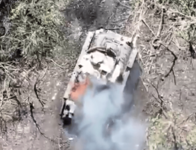 Операторы барражирующего боеприпаса «Ланцет» поразили украинский танк Т-64БВ на Купянском направлении.
