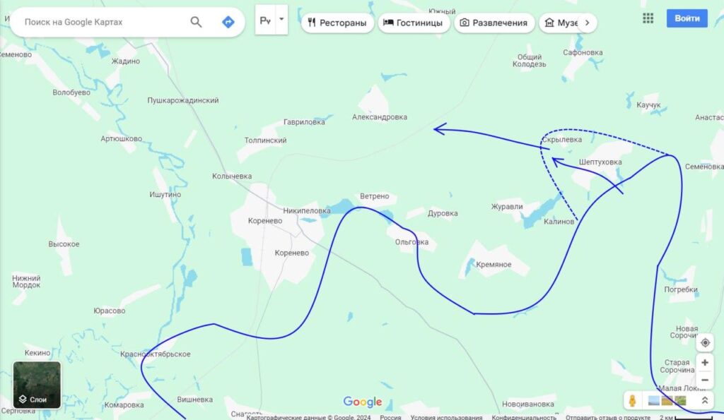 Курское направление на 21.08.24: Глушковский участок. Вчера до самого вечера противник пытался развивать свой успех по направлению к жд станции Глушково с восточного направления. Причем, главными его целями были н.п. Комаровка и Новоивановка (Глушковского района).