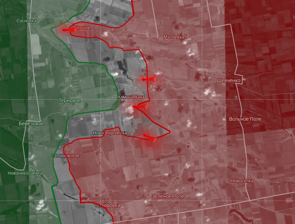 На Времьевском направлении войска РФ продвинулись южнее Новоселовки, в районе Камышевахи Донецкой области, населенный пункт перешел почти полностью к «серую зону».