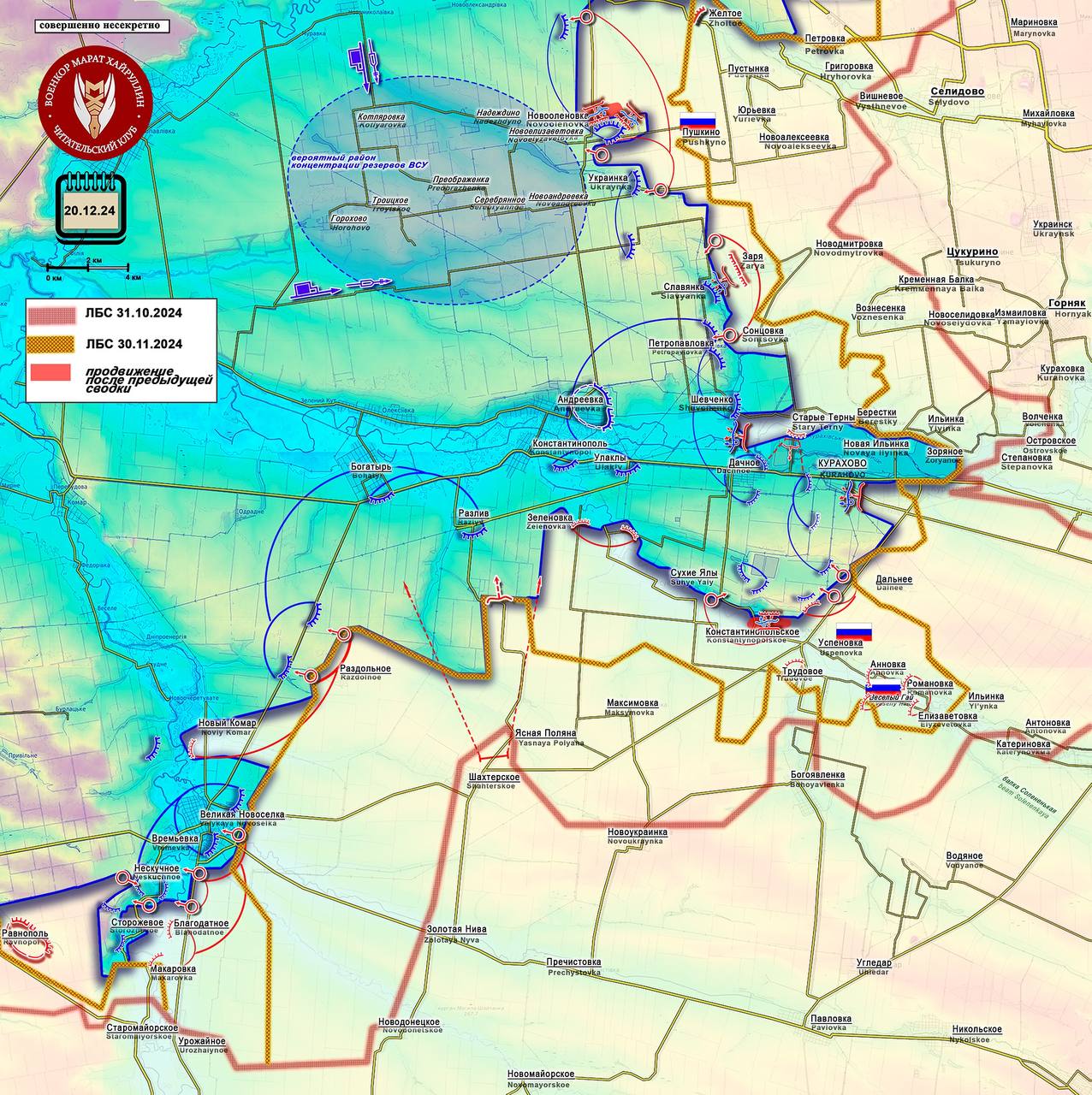Под Покровском продолжается формирование южного фланга для последующего освобождения города. Наши продвигаются от Видродження вдоль железной дороги к Чунишино и рядом расположенной Новоукраинке. Выход туда — это выход в тыл ВСУ в районе Зелёного (если они к тому времени ещё будут там присутствовать, поскольку движение к Зелёному идёт и со стороны Видродження, которое практически всё уже под нашим контролем).