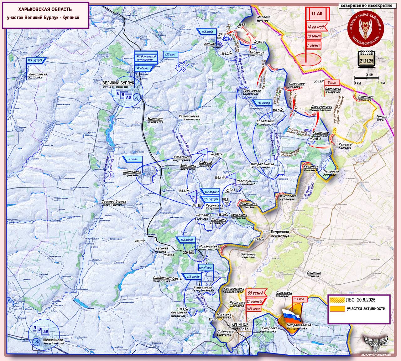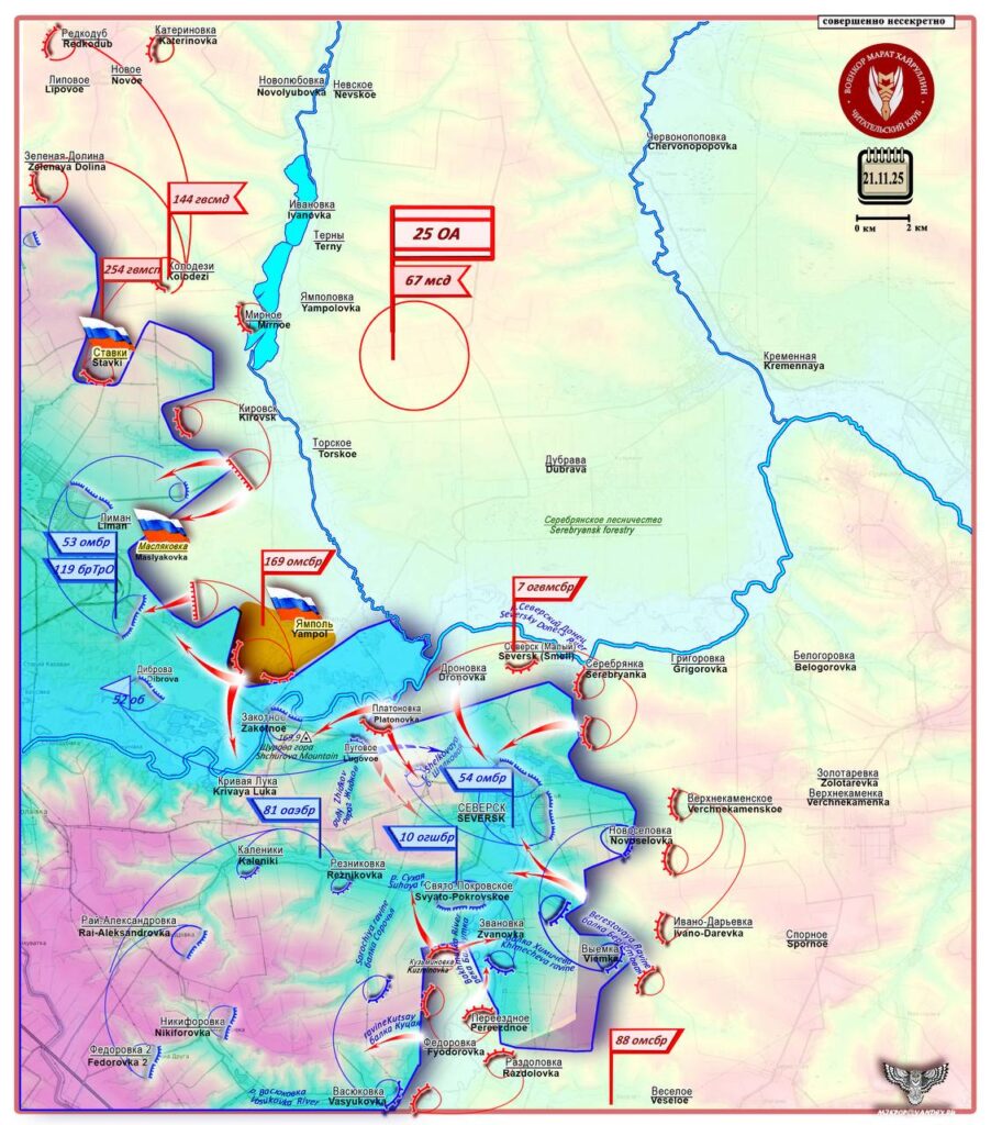 На изюмском направлении российские подразделения продолжают уверенное продвижение, расширяя зону контроля. По состоянию на 21 ноября 2025 года группировка войск «Запад» сообщила об освобождении ряда населённых пунктов в Донецкой и Харьковской областях.
