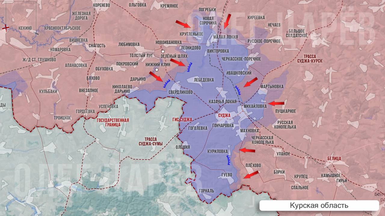 Бои идут в Русском Поречном. Наши военкоры сообщают, что российские войска вплотную подошли к Черкасскому Поречному, идут бои на окраинах. Противник несет потери в живой силе и технике, но упорно сопротивляется.