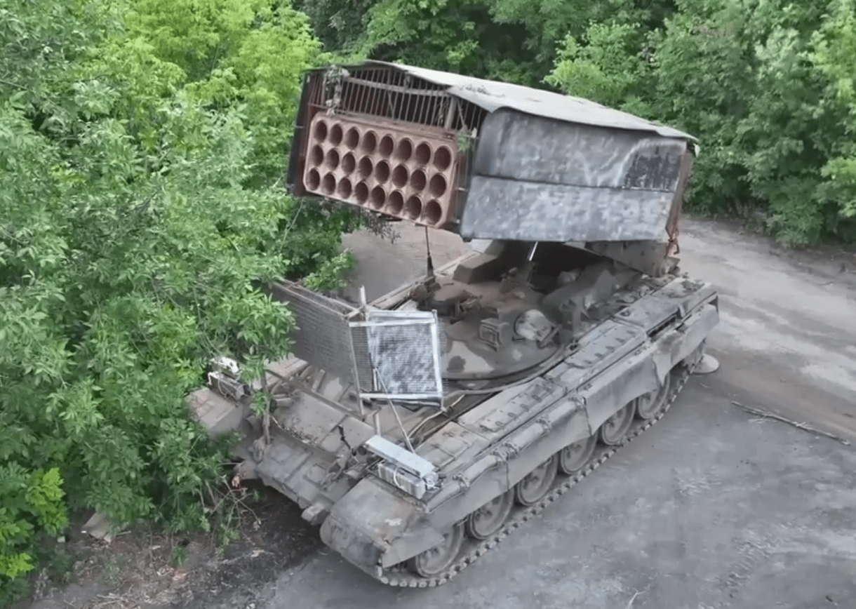 Авдеевское направление — работа ТОС-1А «Солнцепек» по украинскому опорнику. Кадры МО РФ.