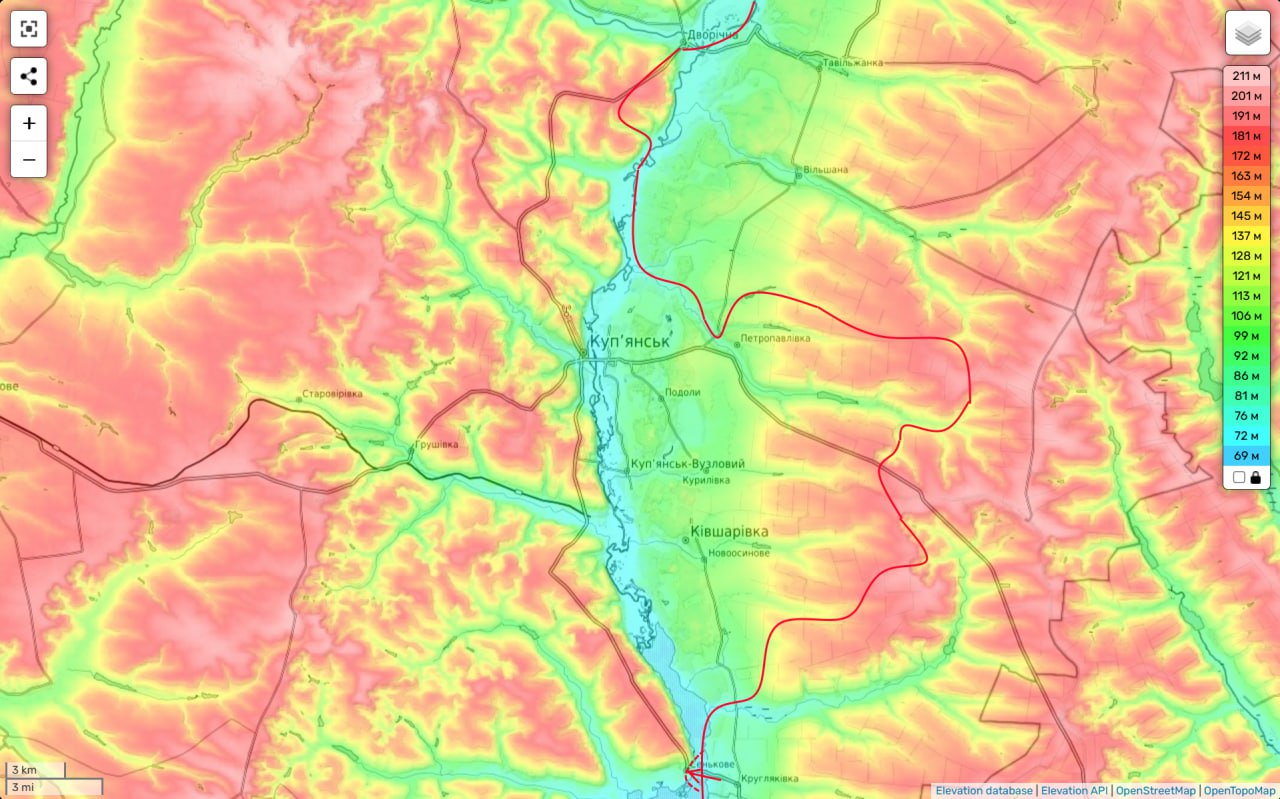 Назначение этих плацдармов очевидно — будущий штурм (или обход) Купянска. Причем противнику, чтобы удерживать ситуацию под контролем (а тем более для атак на плацдармы) сейчас надо здесь срочно усиливать группировку. А резервов мало.
