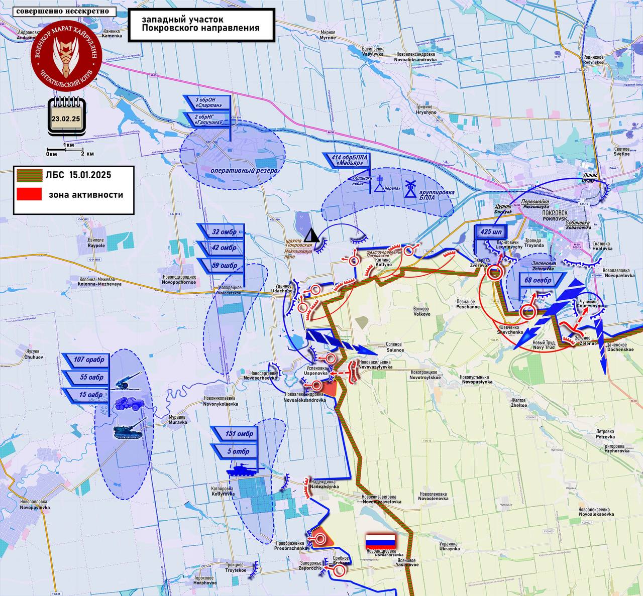 Со стороны н.п. Западное идёт давление в направлении н.п. Дорошовка. Расширение контроля продолжается и северо-западнее н.п. Калиново, где противник в ходе наступательных действий наших подразделений потерял ряд опорных пунктов и понёс значительные потери в живой силе и технике.