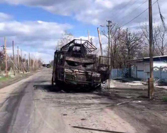 ВСУшники плетутся по дороге на Константиновском направлении между делом демонстрируют уничтоженную БМП-2 ВСУ с защитой «ёжик»