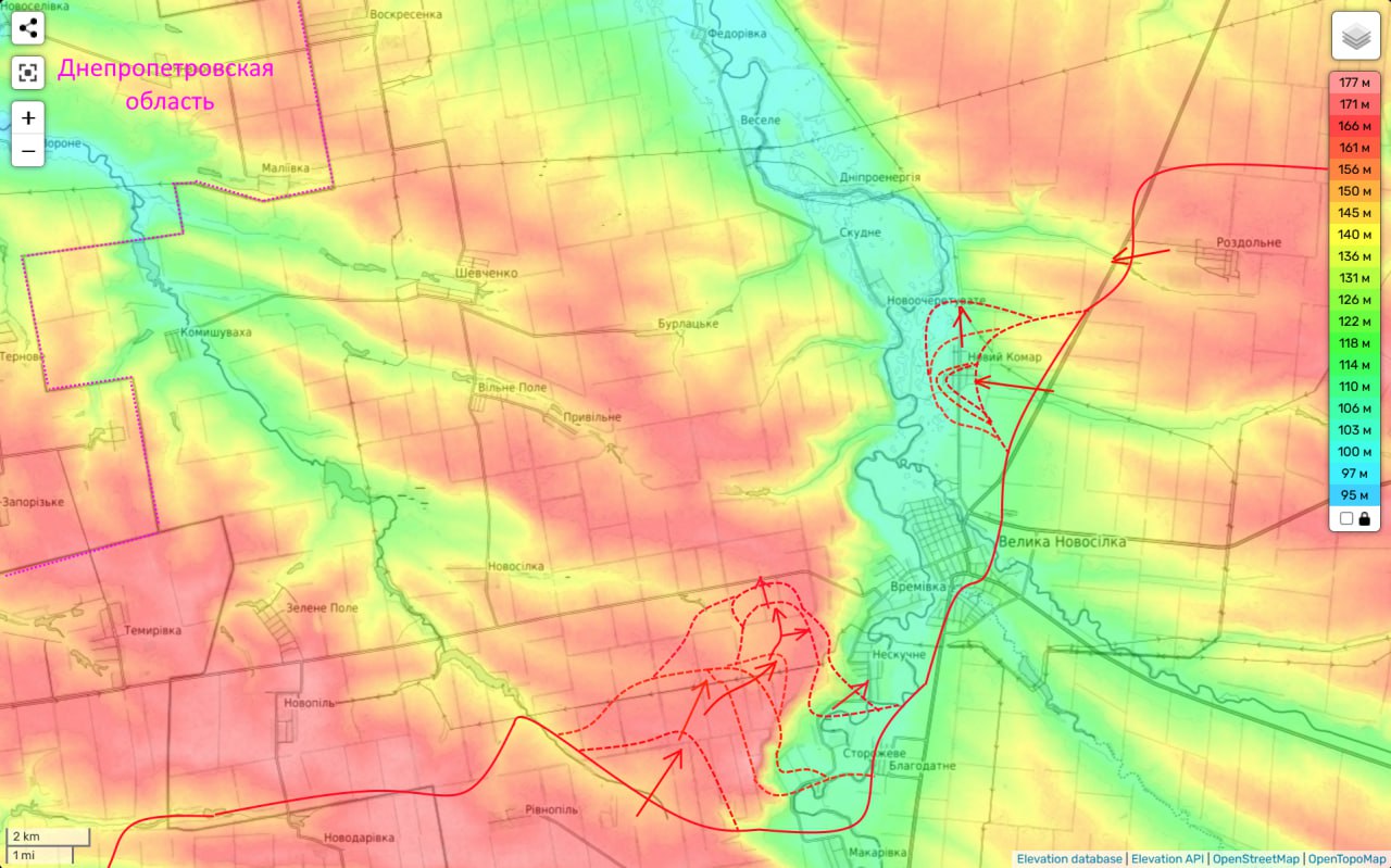 А еще создаст угрозу фронту противника южнее, в районе Славянки — Петропавловки. Которые противник в целом пока успешно обороняет (и не дает нам выйти к Андреевке).