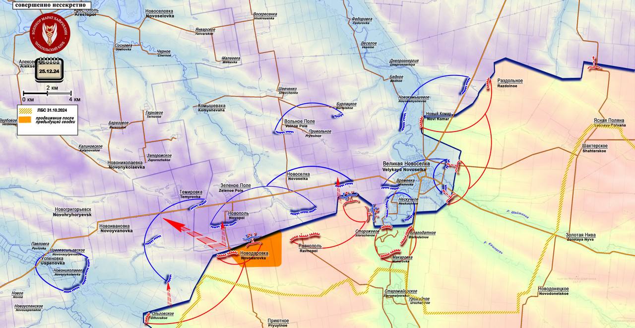 Российские подразделения ликвидировали выступ между Новодаровкой и Ровнополем, упрочив своё положение здесь. Также активность наших подразделений на этом участке не позволяет противнику сконцентрировать силы для контрудара по нашим военным, продвигающимся к Великой Новосёлке.