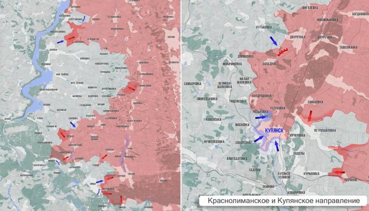 Купянск За город идет тяжелейшее сражение. На данный момент положение российских войск здесь оценивается как критическое. Как минимум часть городской застройки перешла в «серую зону», и точно определить, где проходят позиции сторон, сейчас невозможно. Информация приходит противоречивая. Военный обозреватель Юрий Подоляка сообщает, что российским силам пришлось оставить значительную часть территории на правом берегу, и существует угроза потери оставшейся восточной части города. Эта оценка ситуации выглядит правдоподобной. Однако другие источники утверждают, что большая часть Купянска все еще под контролем ВС РФ. Группировка ВСУ, охватывающая город с севера, юга и юго-востока, насчитывает до 6 тысяч человек. Российская авиация наносит удары по Грушовке, Нечволодовке и Староверовке, где скопились резервы противника. Есть сведения с мест, что подвоз свежих сил ВСУ к Купянску практически остановился, а также что в Радьковке врага нет.