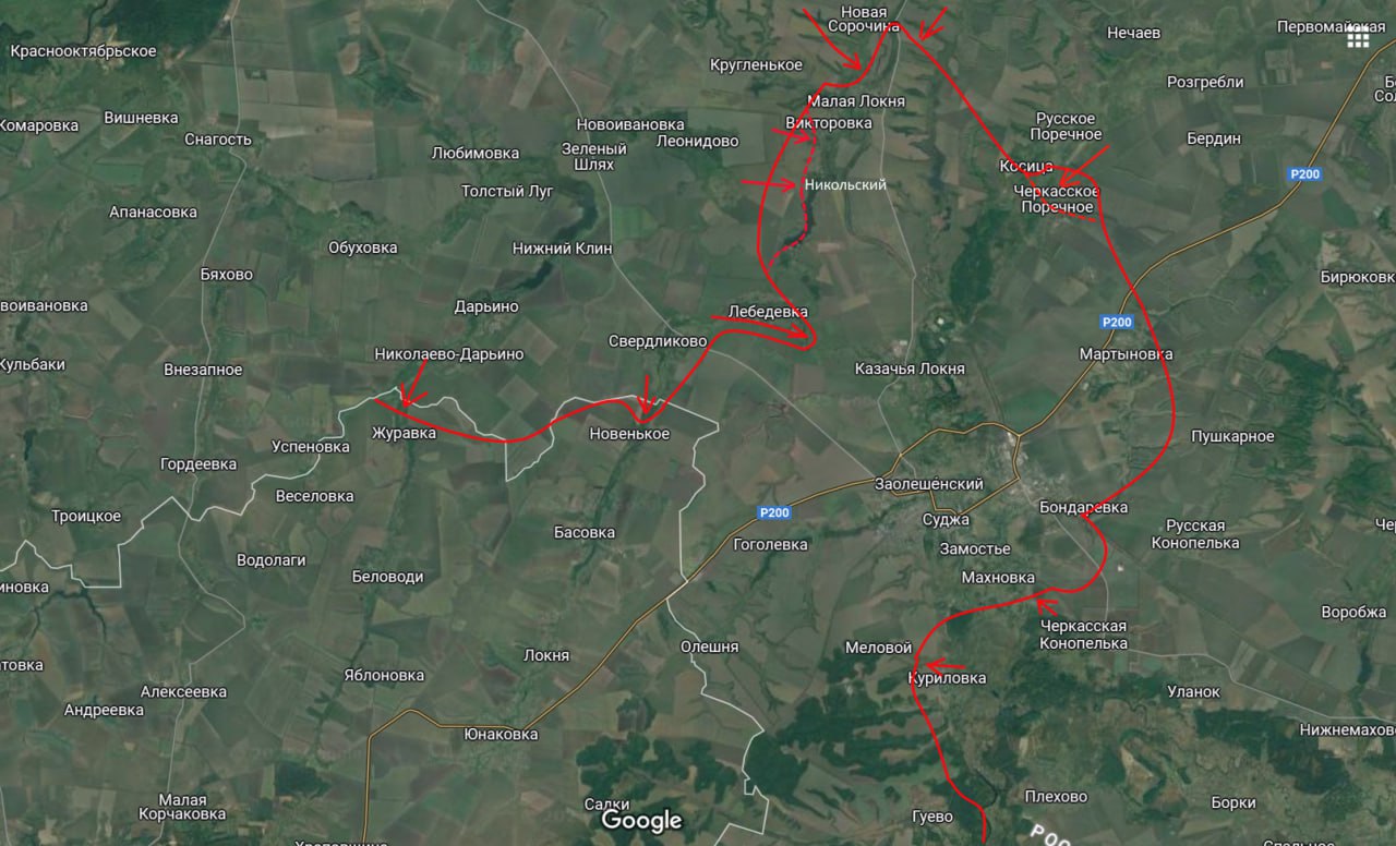Продолжает довольно быстро схлопываться выступ, который был занят противником севернее Суджи вдоль трассы на Льгов.