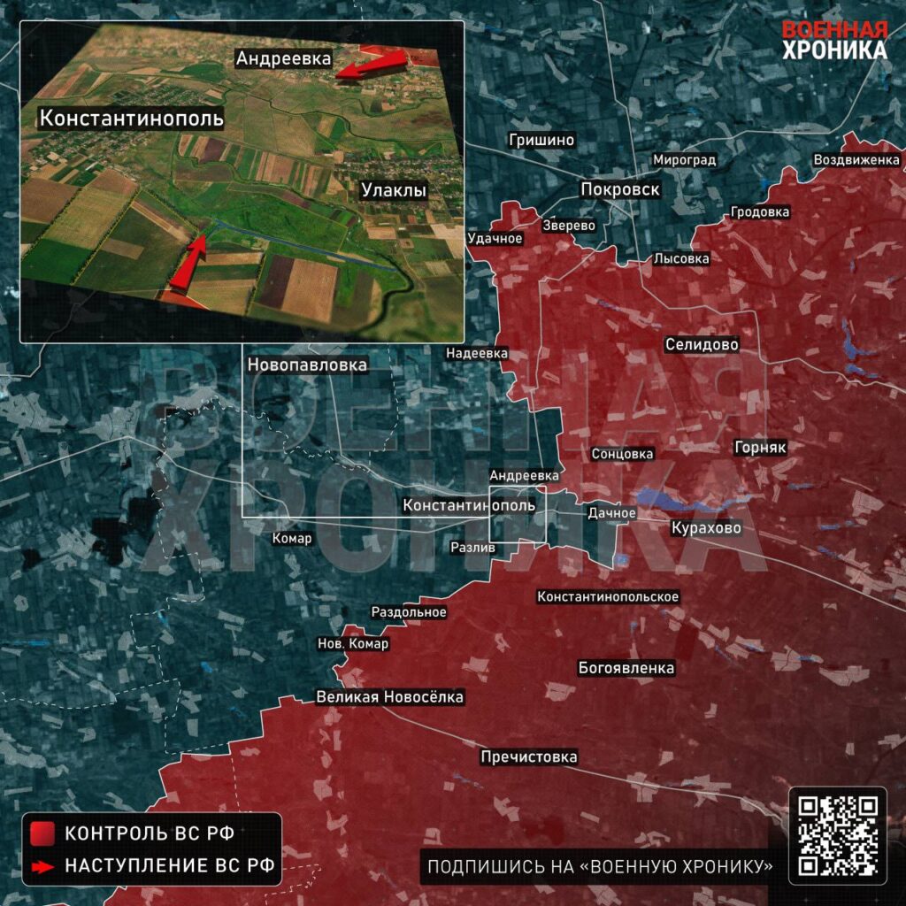За крайние два дня наши части севернее смогли заметно подвинуть противника здесь на запад и теперь основание прорыва на Андреевку довольно широкое. Более того, мы заняли здесь систему крупных укреплений ВСУ, что не позволяет противнику проводить контратаки. А значит, гарнизон Андреевки обречен на разгром. Вопрос только во времени, когда это произойдет.
