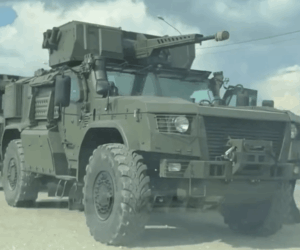 Камазы К-4386 «Тайфун-ВДВ» с дистанционно-управляемыми боевыми модулями БМ-30-Д «Спица» где-то на дорогах в РФ.