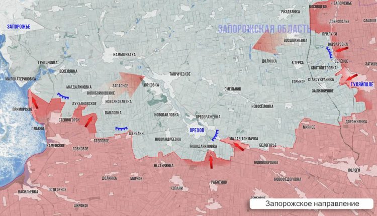 Запорожский участок Столкновения идут в северной части Приморского, неподалеку от Свято-Успенского женского монастыря. Министерство обороны подтвердило взятие под контроль Лукьяновского, при этом бои сместились к Павловке и подступам к Новояковлевке. Высока вероятность, что российские силы освободили Новобойковское, Магдалиновку и Запасное. Войска продвигаются широким фронтом к реке Конка и Юрковке, стремясь взять под огневой контроль трассу Запорожье — Орехов.