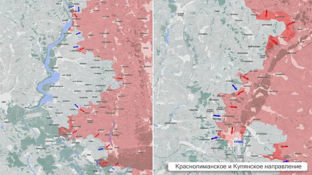 На краснолиманском фронте российские войска приближаются к Красному Лиману с севера, одновременно обходя город с юга в направлении Северского Донца. Расширяется контроль в районах Ставков и Новосёловки.